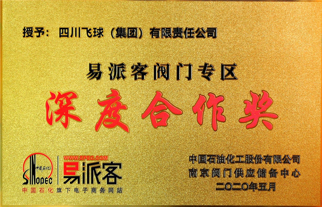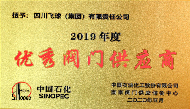 在交流会上,中国石化南京阀门中心向导对2019年度易派客阀门专区建设深度合作单位、阀门优异供应商单位举行了表扬,并揭晓了声誉奖牌,四川飞球(集团)有限责任公司荣获了“中国石化2019年优异供应商”、“易派客阀门专区深度合作奖”。